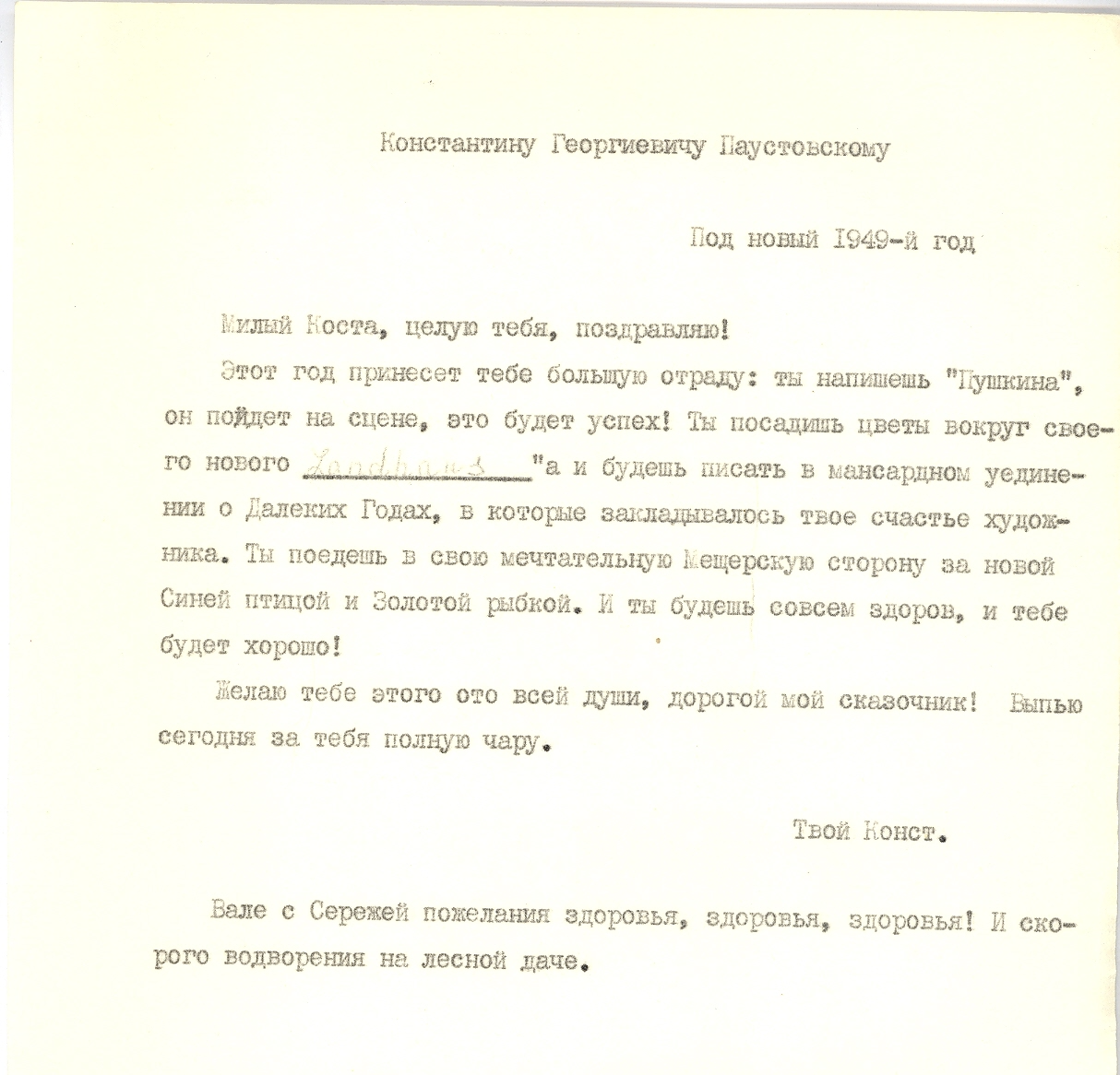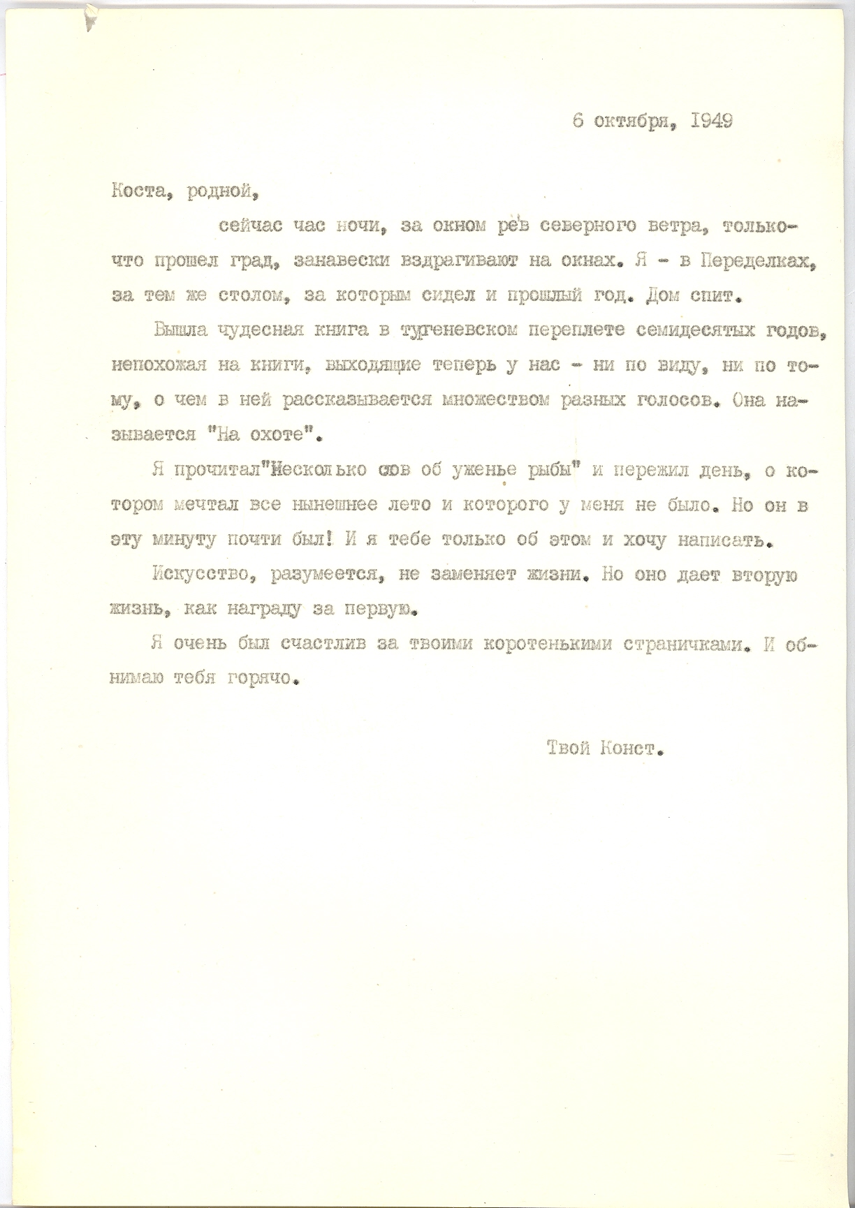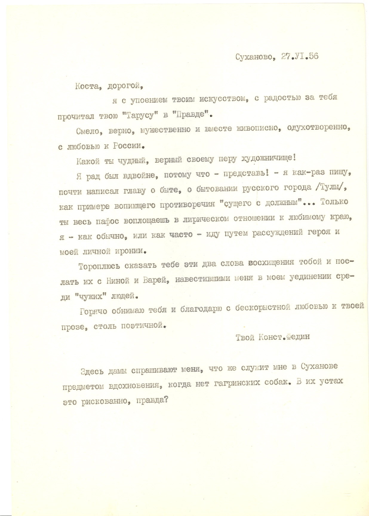 С начала своей дружбы Федин и Паустовский не оставляли без внимания творческие успехи друг друга, принимали живое участие в судьбе друг друга.